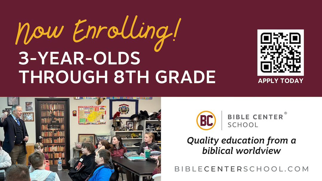BCS is now enrolling for the 2025-26 school year. To apply or schedule a tour, visit BibleCenterSchool.com/admissions.