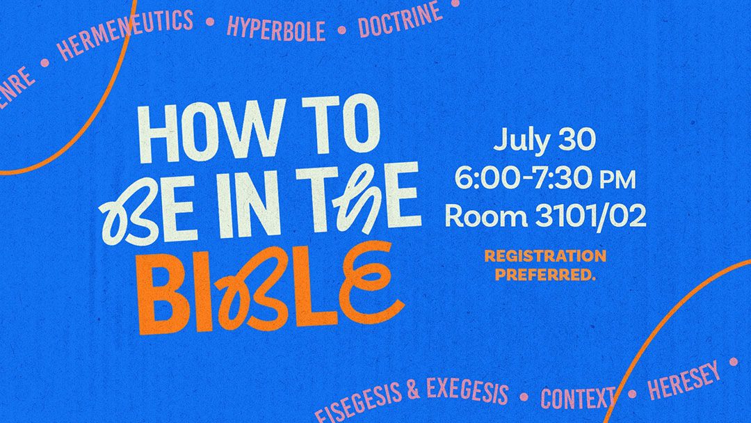Wednesday, July 30 | 6:00-7:30 PM | Room 3101/02 | Led by Matt Keaton and Stacy Walker | The Bible can feel big and overwhelming, and it’s not always easy to know where to begin—or how to know if we’re understanding it correctly. Matt Keaton and Stacy Walker are hosting a one-hour class called How to Be in the Bible. This class is a great starting point for learning how to read and engage with Scripture with confidence. Don’t miss this opportunity to take your first steps in Bible reading—mark your calendar today! For planning purposes, registration is preferred.