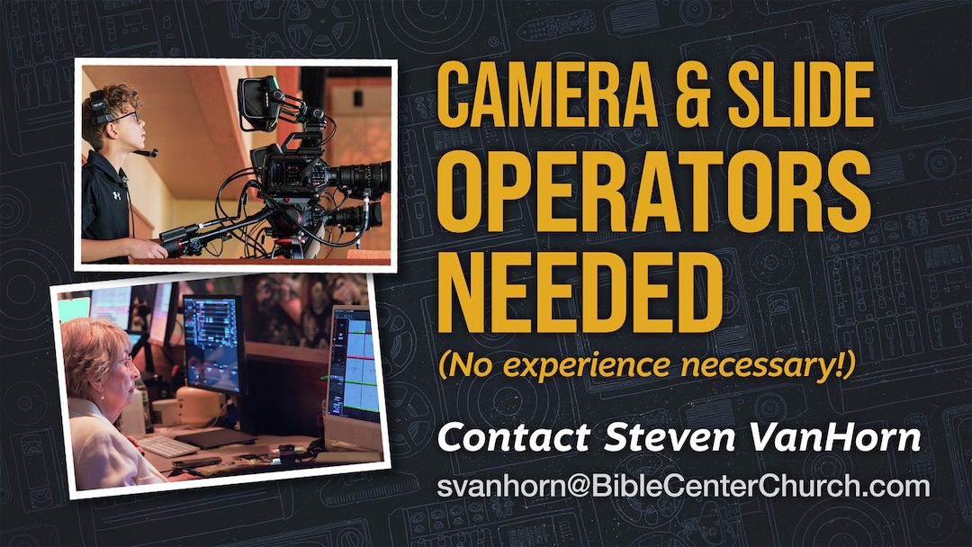 If you love technology and media, the Production Team might be the perfect spot for you. To learn to run a camera or the slides for services, contact Steven VanHorn.