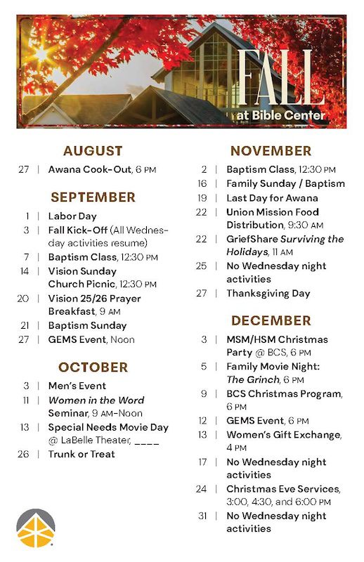 This Fall is packed with opportunities for us to connect and engage with one another and our community—and to grow in our relationships and in our walk with the Lord.